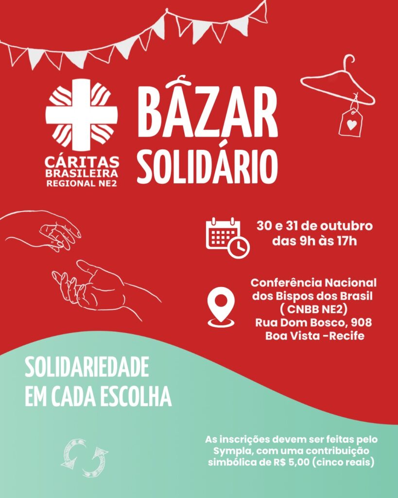 Compre e faça o bem: evento transforma boas compras em gestos de solidariedade no Nordeste Nos dias 30 e 31 de outubro, a Cáritas Brasileira Regional Nordeste 2 realiza mais uma edição do Bazar Solidário, na sede da Conferência Nacional dos Bispos do Brasil (CNBB Nordeste 2), no bairro da Boa Vista, em Recife. A […]