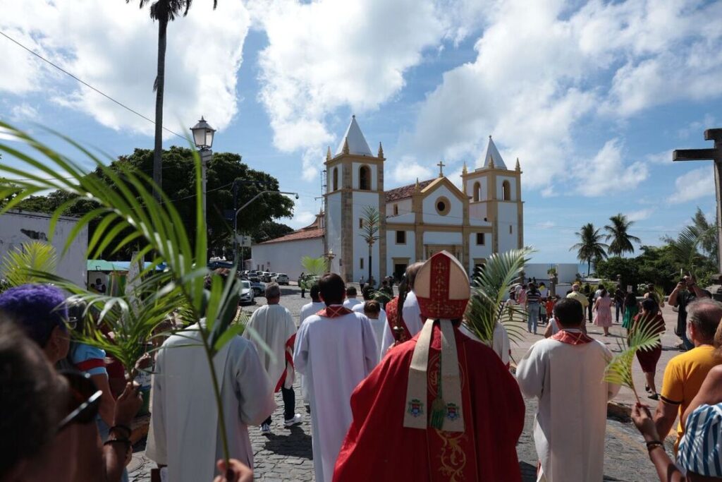 A celebração começou com a bênção dos ramos, gesto simbólico que relembra a acolhida de Jesus em Jerusalém. Em seguida, os fiéis seguiram em procissão a partir das 8h, saindo da Capela da Misericórdia, no Alto da Sé, em direção à Catedral da Sé de Olinda, onde foi celebrada a missa às 9h, presidida pelo arcebispo de Olinda e Recife, Dom Paulo Jackson.