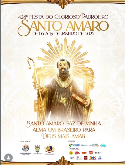 Neste ano, a festa traz como tema “Santo Amaro, faz de minha alma um braseiro para Deus mais amar”, convidando o povo de Deus a renovar a fé, aprofundar a vida espiritual e reacender o amor a Cristo, à luz do exemplo do padroeiro.