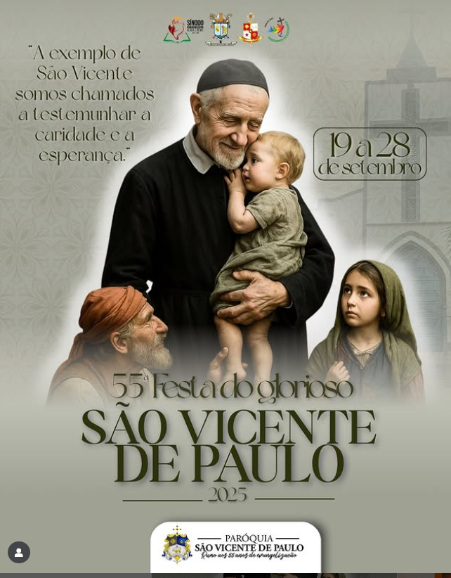 De 19 a 28 de setembro, a Paróquia São Vicente de Paulo celebra sua 53ª festa em honra ao padroeiro, com o tema: “A exemplo de São Vicente, somos chamados a testemunhar a caridade e a esperança”.