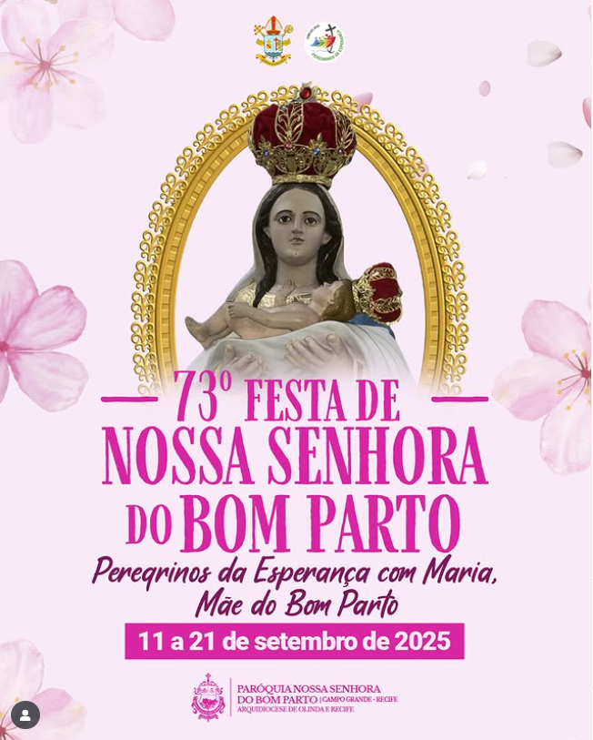 A Paróquia Nossa Senhora do Bom Parto, em Campo Grande, Recife, promove de 11 a 21 de setembro a 73ª Festa de Nossa Senhora do Bom Parto, com o tema “Peregrinos da Esperança com Maria, Mãe do Bom Parto”.