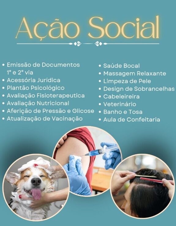 Entre os serviços gratuitos oferecidos estão: emissão de documentos (1ª e 2ª via), assessoria jurídica, plantão psicológico, avaliação fisioterapêutica e nutricional, aferição de pressão e glicose, atualização de vacinação, atendimentos de saúde bucal, além de massagens, limpeza de pele, design de sobrancelhas e cuidados de beleza.