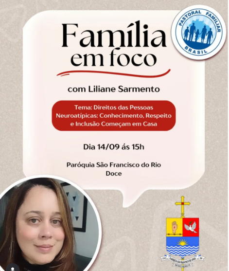 A Pastoral Familiar da Paróquia São Francisco do Rio Doce, em Olinda, promove neste domingo (14 de setembro), a segunda edição do projeto “Família em Foco”, com o tema “Direitos das Pessoas Neuroatípicas: conhecimento, respeito e inclusão começam em casa”.