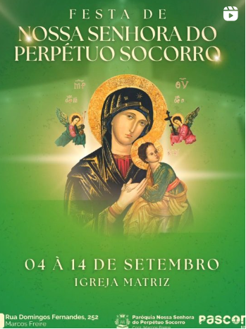 De 4 a 14 de setembro, a Paróquia Nossa Senhora do Perpétuo Socorro, em Marcos Freire, celebra sua padroeira com momentos de fé e devoção. A festividade acontece na Igreja Matriz e reúne a comunidade em oração, novenas e missas, fortalecendo a espiritualidade e a devoção mariana.