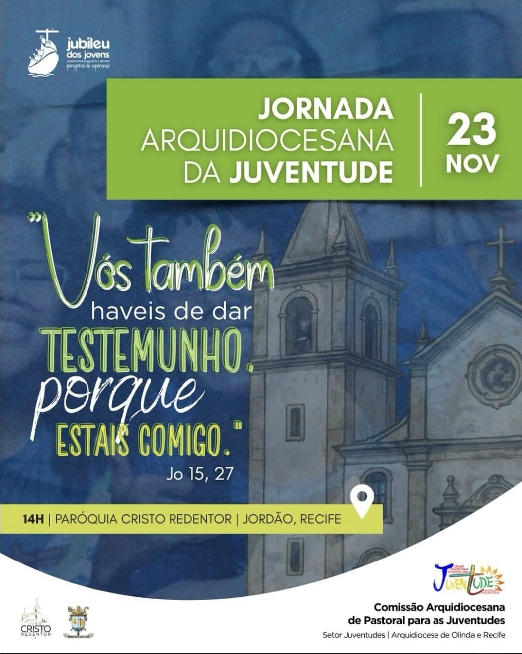 A Arquidiocese de Olinda e Recife realiza no próximo dia 23 de novembro, a Jornada Arquidiocesana da Juventude (JAJ), um grande encontro de fé, comunhão e testemunho dos jovens católicos.
