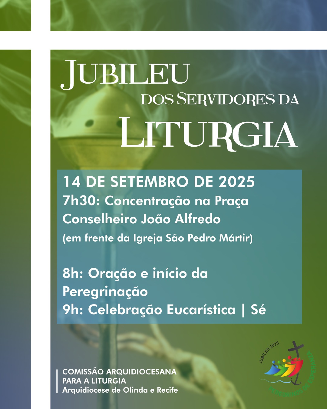 No dia 14 de setembro de 2025, a Arquidiocese de Olinda e Recife promove o Jubileu dos Servidores da Liturgia. O encontro reunirá todos os que atuam no serviço litúrgico nas paróquias e comunidades, em um momento de fé, comunhão e celebração.