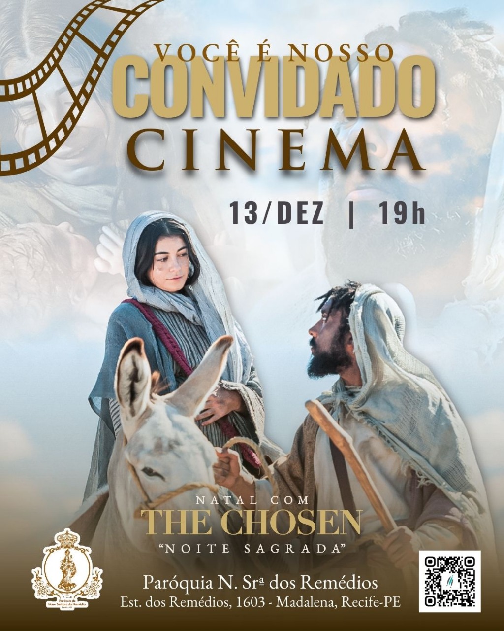 A Paróquia de Nossa Senhora dos Remédios, localizada na Madalena, Recife, realiza no próximo dia 13 de dezembro, às 19h, uma noite especial de exibição da série internacional The Chosen. A iniciativa, aberta ao público, convida fiéis, famílias e toda a comunidade para um momento de espiritualidade, arte e preparação para o Natal.
