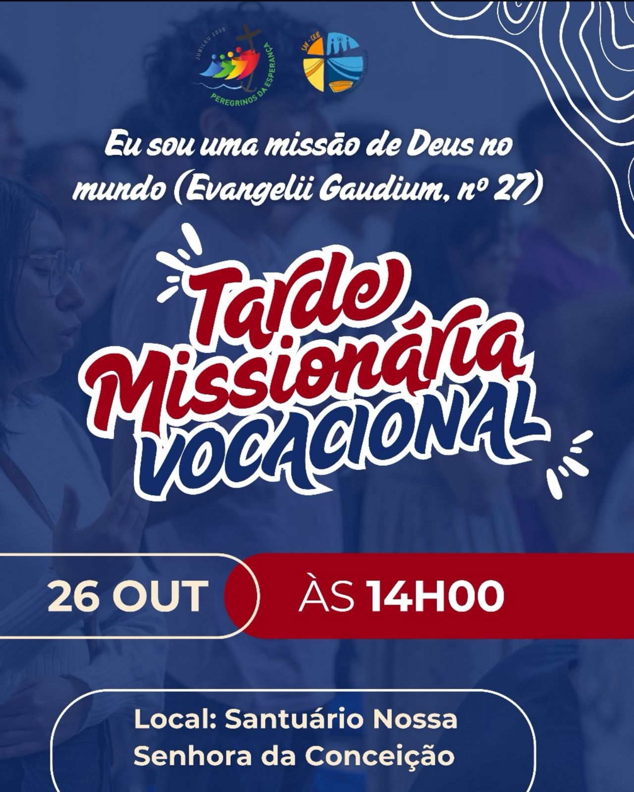 Inspirada no tema “Eu sou uma missão de Deus no mundo” (Evangelii Gaudium, nº 27), a Tarde Missionária Vocacional será realizada no próximo dia 26 de outubro, às 14h, no Santuário Nossa Senhora da Conceição, no Morro da Conceição, em Recife.